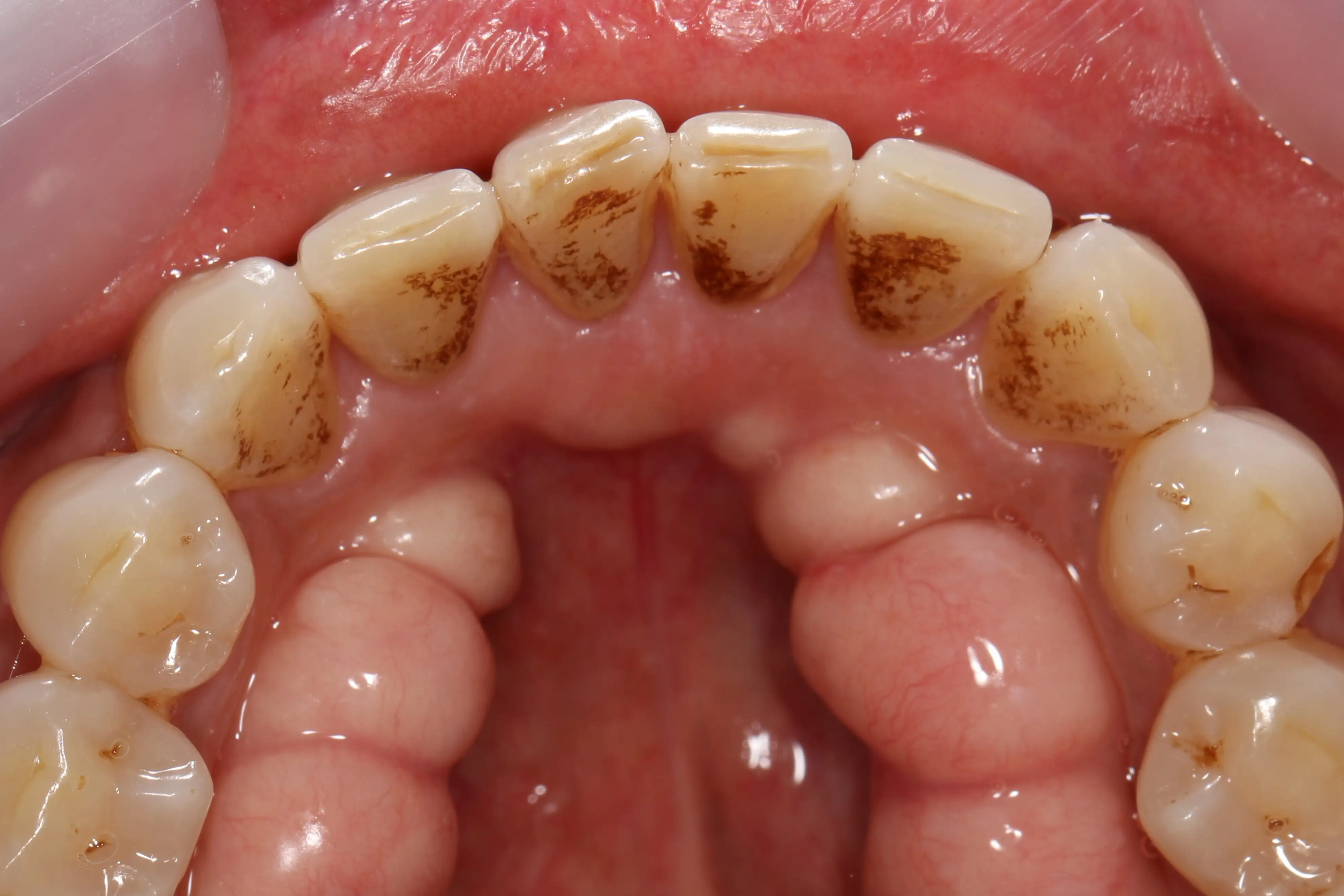 Mandibular Tori are common, harmless bone growths. They usually cause no pain, but you may notice their presence when eating, brushing, or placing an appliance. They are characterized by their location and size: